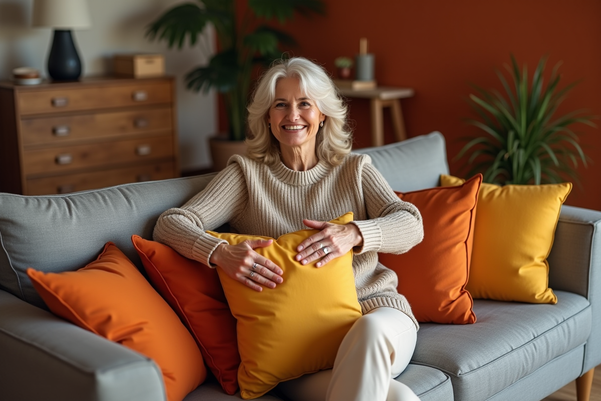 Le jaune apporte instantanément une touche de joie, surtout lorsqu’il est dosé par petites touches : un fauteuil en velours moutarde, un plaid éclatant, des rideaux de lin doré. Plusieurs experts le recommandent pour réveiller des pièces devenues trop sages. Du côté de l’orange, on dynamise la pièce à travers un pan de mur, un tapis à motifs ou une simple lampe. Ce sont ces détails colorés qui insufflent de l’énergie, sans tomber dans l’excès.